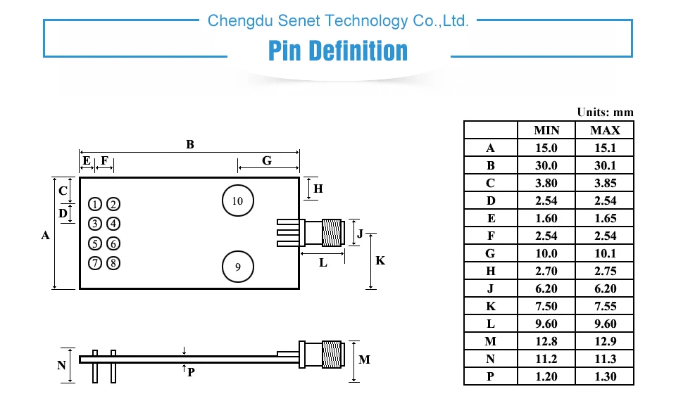 Açık ve net havada, maksimum güç, 5dBi anten kazancı, 2m yükseklik, Hava veri hızı: 0.6kbps |