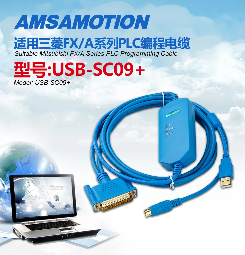 USB-SC09+ İzole edilmiş Usb kablo Mitsubishi FX1S/1N/2N/3U/3G